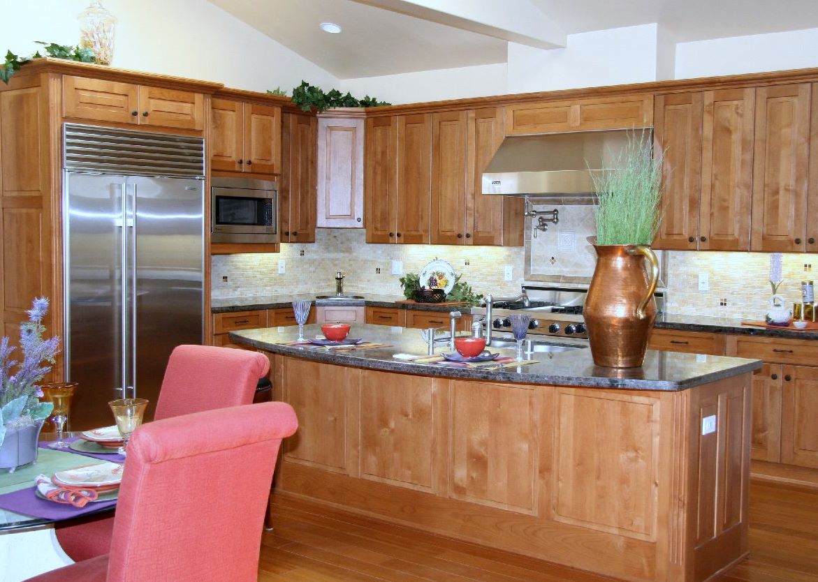 The Kitchen and Family room are all-in-one ample area with vaulted ceiliing,